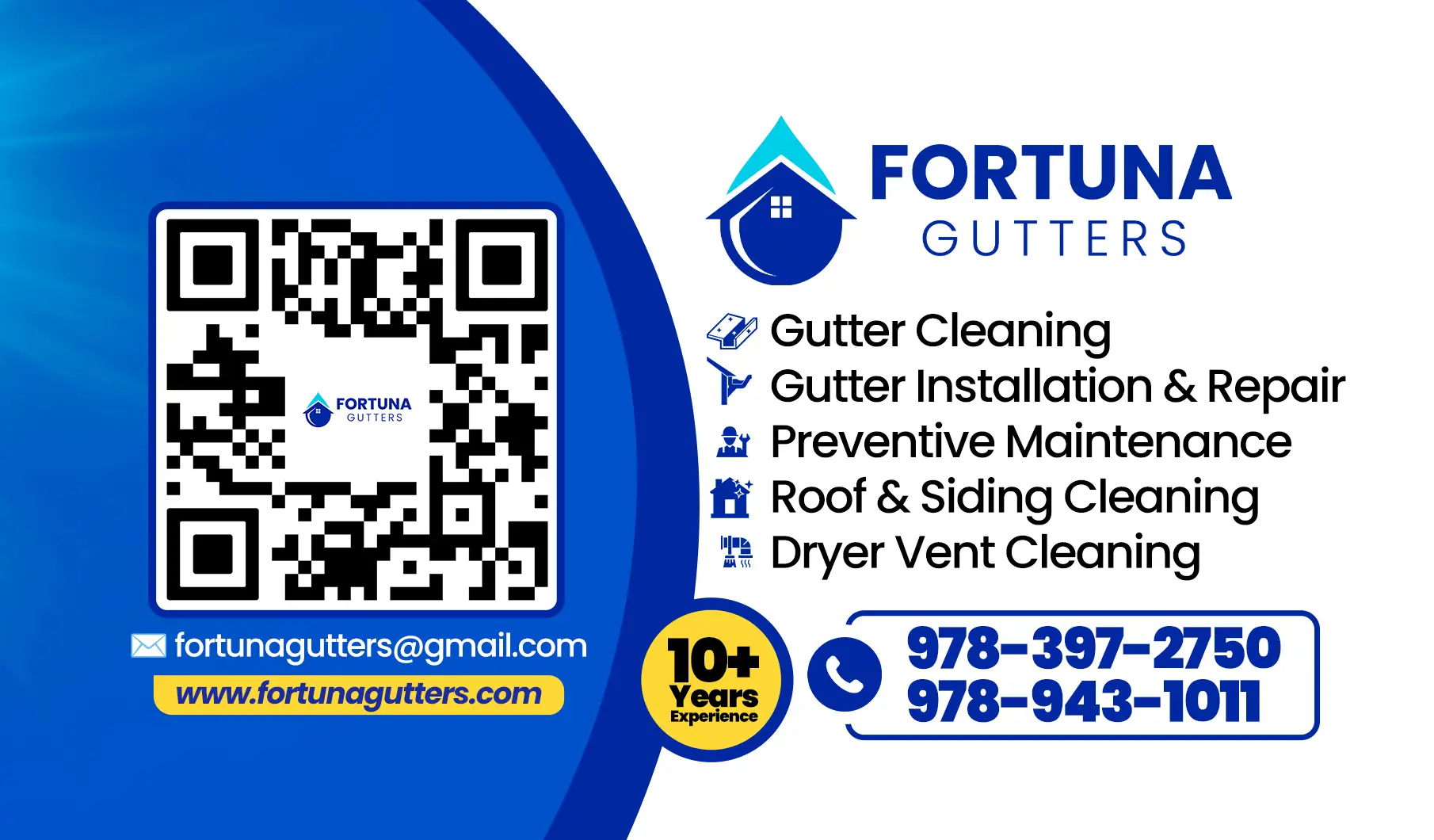 Fortuna Gutters is your trusted, family-owned partner in Massachusetts gutter care. Our certified, fully insured team brings more than 10 years of combined hands-on experience in gutter maintenance Massachusetts, gutter repair near me, and roof moss removal Massachusetts. We live by a “safety first” motto, delivering: